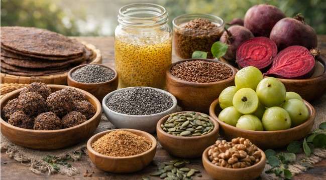 आधुनिक जीवनशैली और परिवार की जिम्मेदारियों के बीच महिलाओं में पोषक तत्वों की कमी, हार्मोन असंतुलन और कमजोरी जैसी समस्याएं तेजी से बढ़ रही हैं, जो आगे चलकर कई गंभीर बीमारियों का कारण बन सकती हैं। ऐसे में संतुलित और पोषक आहार बेहद जरूरी हो जाता है। स्वास्थ्य विशेषज्ञों का कहना है कि कुछ प्राकृतिक और आसानी से उपलब्ध खाद्य पदार्थों को रोजाना आहार में शामिल करके महिलाएं अपने शरीर की कई कमियों को दूर कर सकती हैं। इनमें सबसे पहले रागी का नाम आता है, जो कैल्शियम, आयरन और फाइबर से भरपूर होती है। रागी का सेवन हड्डियों को मजबूत बनाने, हार्मोन संतुलित रखने और त्वचा व बालों को स्वस्थ बनाए रखने में मदद करता है। इसे रोटी, चीला या लड्डू के रूप में आसानी से खाया जा सकता है। दूसरे स्थान पर आंवला है, जो विटामिन-सी का बेहतरीन स्रोत माना जाता है। यह शरीर की रोग प्रतिरोधक क्षमता को मजबूत करता है और संक्रमण से बचाव में सहायक होता है। आंवले का सेवन जूस, चटनी, अचार या मुरब्बे के रूप में किया जा सकता है। इसके अलावा चिया सीड्स भी महिलाओं के लिए काफी फायदेमंद हैं। इनमें कैल्शियम और फाइबर प्रचुर मात्रा में पाया जाता है, जो पाचन तंत्र को बेहतर बनाता है, कमजोरी दूर करता है और वजन को नियंत्रित रखने में मदद करता है।