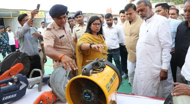 इस दौरान पुलिस महानिरीक्षक अरविंद कुमार सक्सेना, कलेक्टर रुचिका चौहान, अपर कलेक्टर कुमार सत्यम, नगर निगम आयुक्त संघ प्रिय एवं जिला पंचायत सीईओ सोजान सिंह रावत सहित जिला प्रशासन के अधिकारी भी मौजूद रहे। कलेक्टर रुचिका चौहान ने जनप्रतिनिधियों को मेले का भ्रमण कराया और एसडीआरएफ टीम द्वारा आग बुझाने का व्यवहारिक प्रदर्शन कराया।
